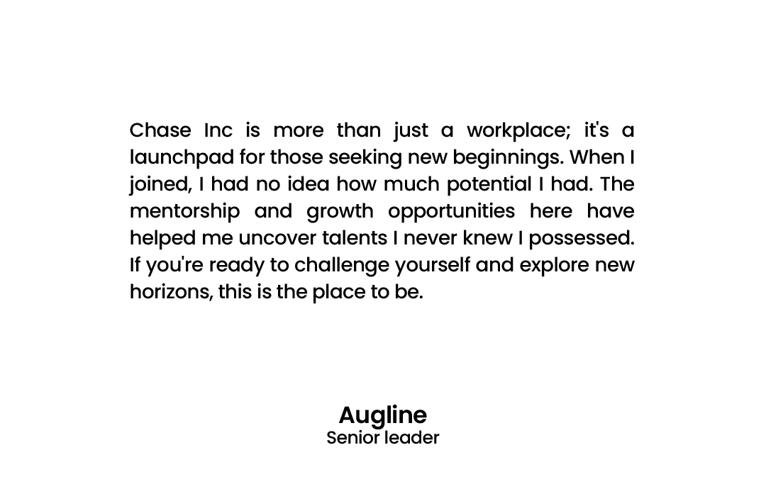 At Chase Inc., we believe that every young person has the potential to be an entrepreneur. Our mission is to provide them with the education, resources, and support they need to turn their ideas into successful businesses. We offer comprehensive training programs, mentorship opportunities, and a vibrant community of like-minded individuals. Our team of experienced professionals is dedicated to helping young entrepreneurs develop the skills and mindset necessary to thrive in today’s competitive business landscape. We’re committed to fostering a culture of innovation, creativity, and collaboration, where young people can learn, grow, and achieve their entrepreneurial goals.
